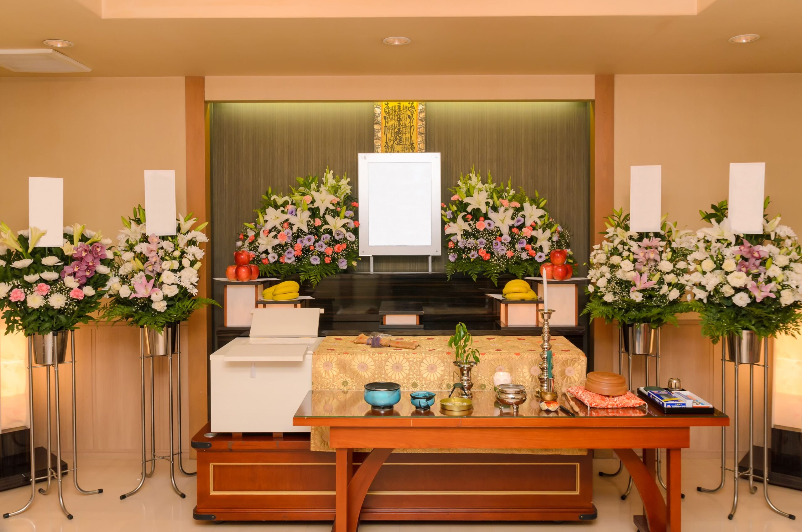 故人様を彩る生花祭壇をご用意いたします。お別れの場を寂しくさせないよう、心を込めて美しく飾り付けます。