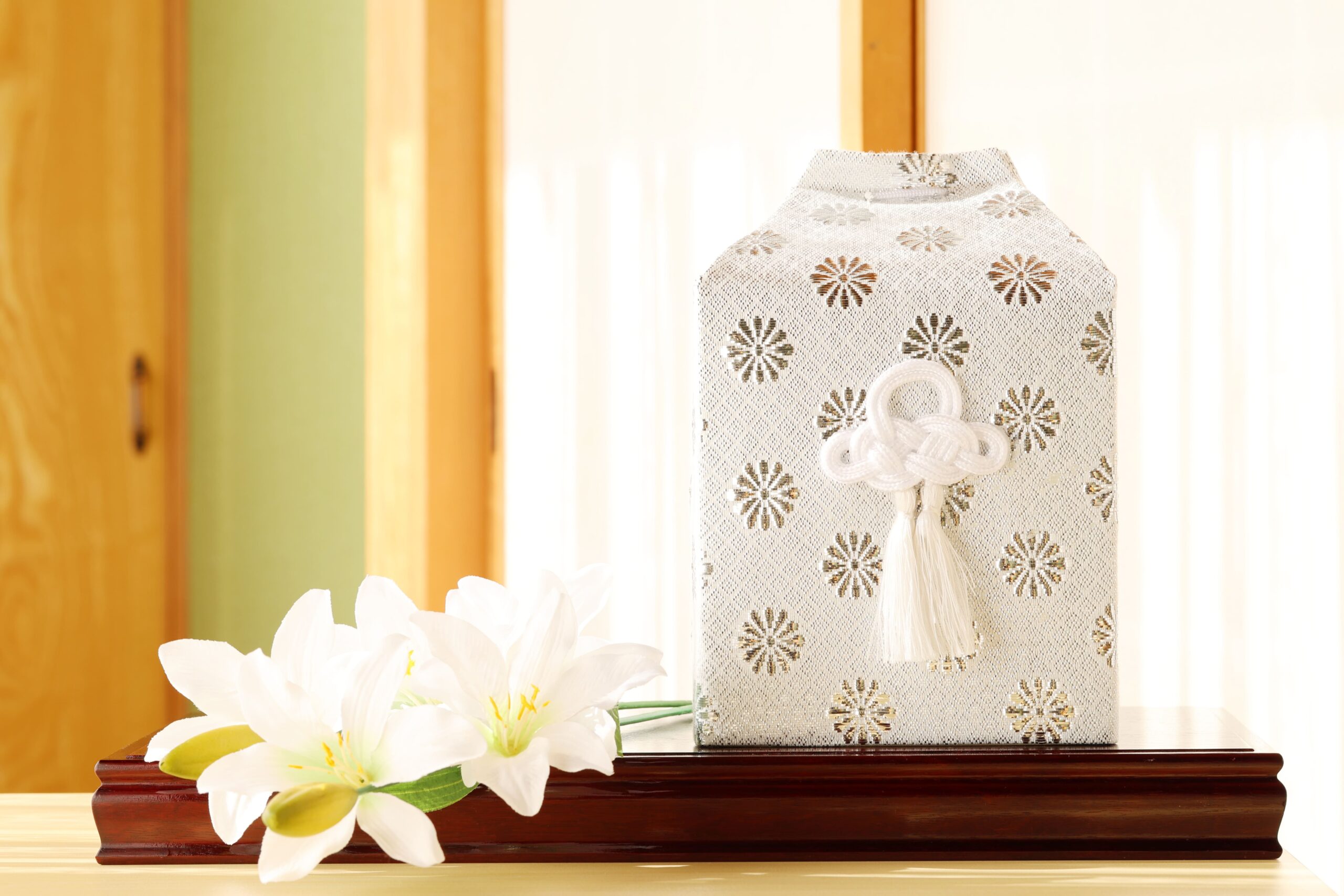 火葬後のお骨を収める、骨壷一式をご用意いたします。地域の慣習に合わせた適切なサイズをご案内しますので、初めての方も安心してお任せください。