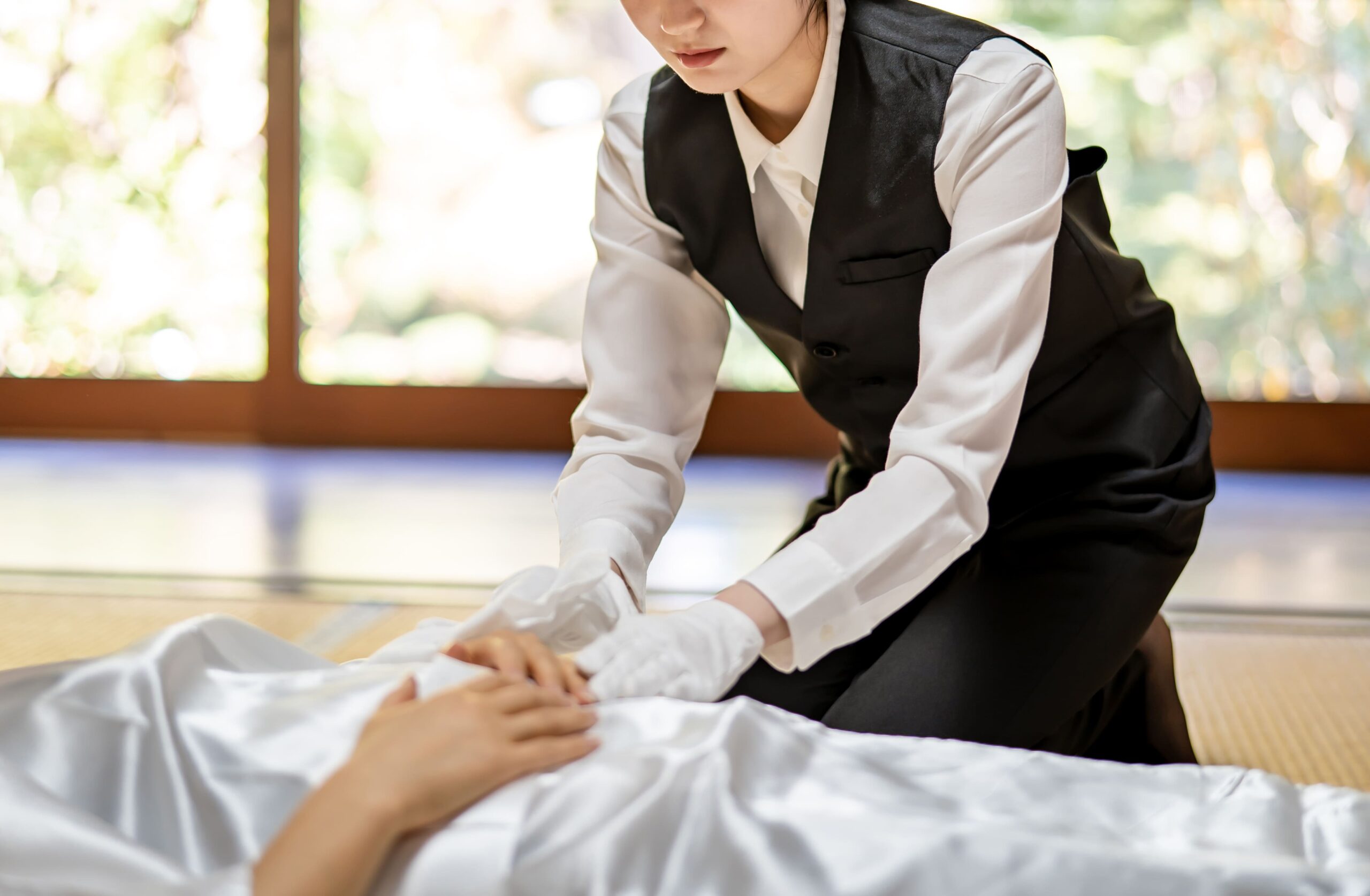 故人様を清潔かつ安全にご安置するための防水シーツです。大切なお体を守り、式当日まで綺麗な状態を保てるよう細心の注意を払い準備いたします。